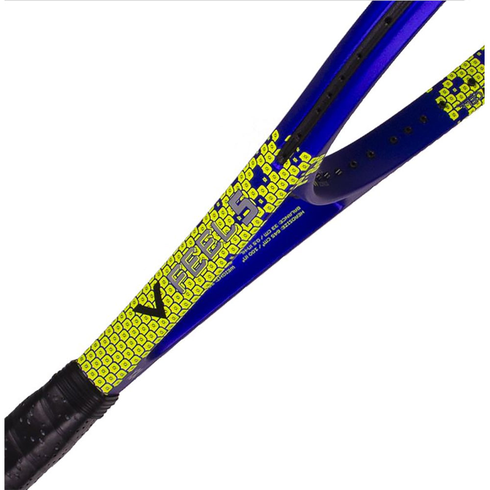 DEMO RACQUET PROGRAM: The Volkl V-Feel 5 Tennis Racquet is highly maneuverable with a slightly head-light balance to keep the racquet fast, yet stable. The frame features the Super-G grommet system that will increase energy return and has a 16x18 string pattern in a 100 head size for added control. This racquet comes with VCell which enables more feel and higher frequency and the VTex is a silicone polymer-based butt cap that increases the dampening in the racquet handle. These new technologies allow players to have a more lively, dynamic frame without compromising on control or feel.